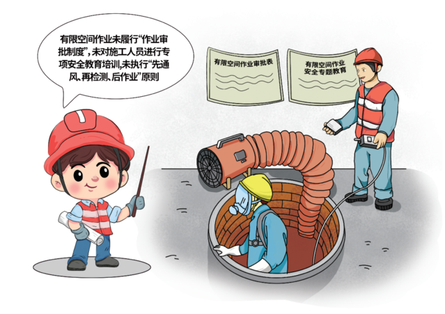 1.有限空间作业未履行“作业审批制度”,未对施工人员进行专项安全教育培训,未执行“先通风、再检测、后作业”原则;
