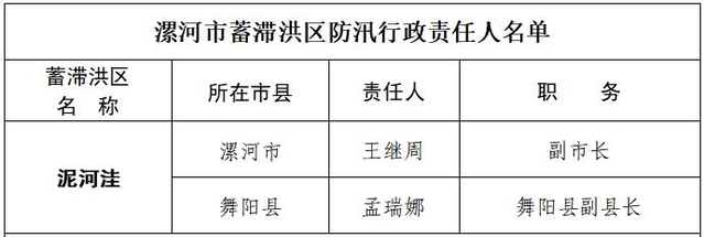 关于漯河市防汛抗旱和主要防洪河道防汛行政责任人名单的公示