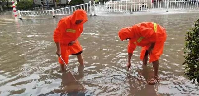 9月4日一早,市区部分路段开始出现积水,有的雨水口被漂浮的树叶、垃圾堵塞,市城管局环卫服务中心立即组织全市环卫工人清理雨水口的树叶和垃圾,加快雨水排放。