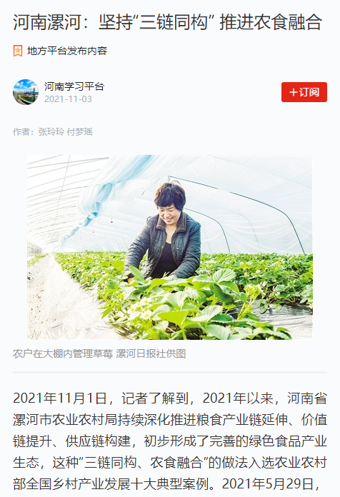 2、河南漯河:坚持“三链同构” 推进农食融合