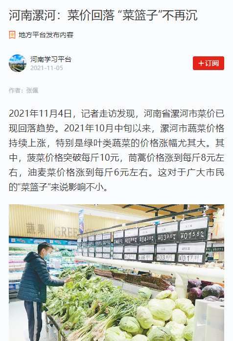 7、河南漯河:菜价回落 “菜篮子”不再沉