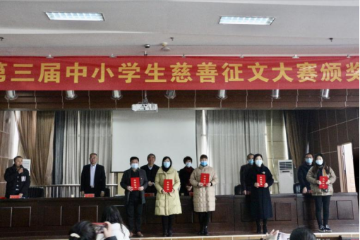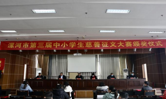 2022年1月8日上午,漯河市第三届中小学生慈善征文大赛表彰会在漯河日报社三楼会议室召开。漯河市慈善总会副会长赵国锁出席并讲话。市民政局二级调研员何雪玲、市教育局副局长刘盘松、漯河日报社副总编辑李国华、市慈善总会秘书长李金奎出席会议。表彰会由漯河日报社小记者部主任杨东辉主持。