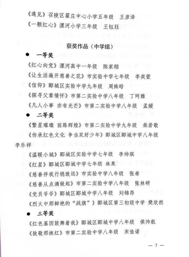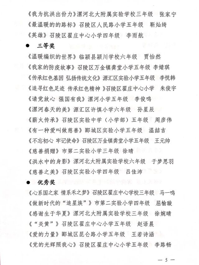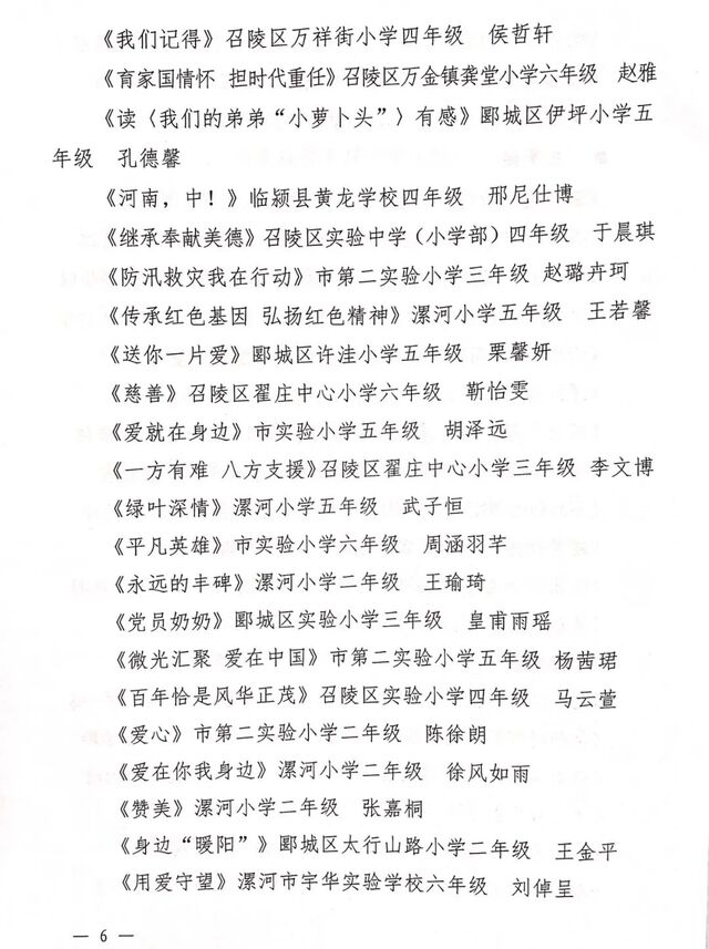 《党的光辉照我心》召陵区翟庄中心小学五年级 李路畅