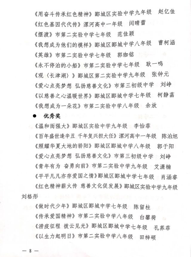 《红色精神薪火传 慈善文化促发展》郾城区实验中学九年级 刘格彤