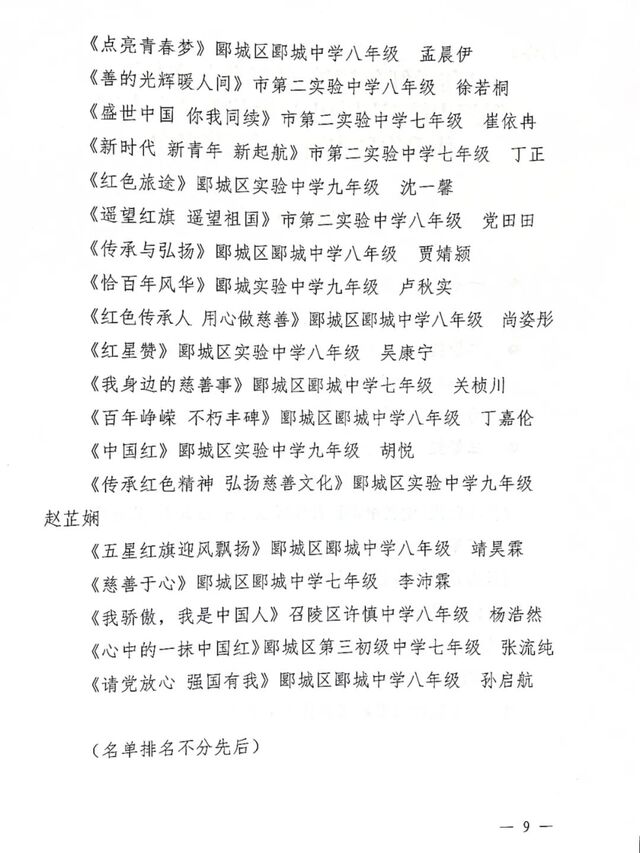 《传承红色精神 弘扬慈善文化》郾城区实验中学九年级 赵芷娴