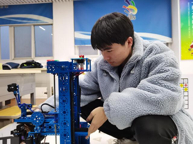侯坤鹏擅长编程和参数计算,唐高远擅长实际操作,无论是训练场上还是正式比赛中,他们配合默契,攻克一个又一个难关。“为帮助我们提高参赛水平,学院特意购置了新的机器人模块。目前我们已完成新模块的组装与编程,正在调试参数和进行抓取训练,希望能在最短的时间内完成这一训练任务。”侯坤鹏说。他和唐高远还感激地对记者说,春节期间两位老师放弃与家人团聚、一直陪他们坚持训练,孙洪波老师还在除夕夜亲自为他们下厨,让他们度过了一个既特殊又难忘的春节。