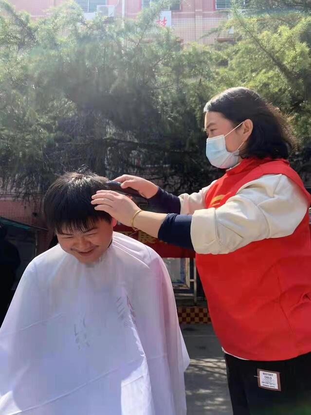 “走,理发去!”4月4日上午,在漯河技师学院南校区,几名男同学兴奋地走出教室。此时,校园一处空地上,汽车工程系教师赵克歌和安梅歌已经摆好座椅、拿出理发工具,静候学生们到来。