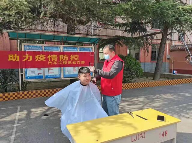 疫情袭来,漯河技师学院按照防疫规定实行封闭管理。看着学生们的头发越长越长,有理发技术的赵克歌、安梅歌两位老师便自购工具免费给自己班的学生理发。消息传开后,其他班的学生也来找两位老师理发。于是两位老师索性在校园开了“义务理发店”,每天利用自习时间为学生理发。