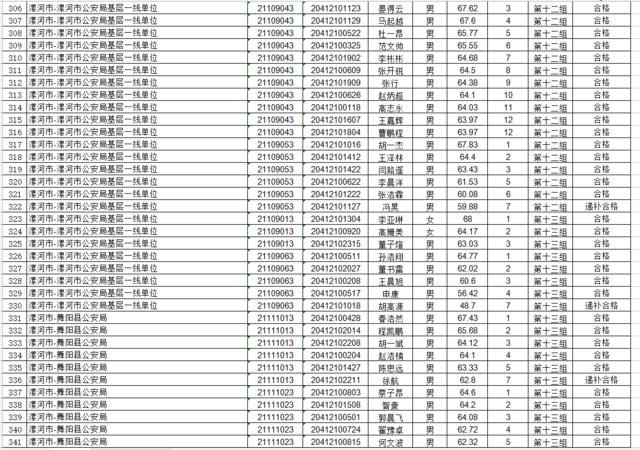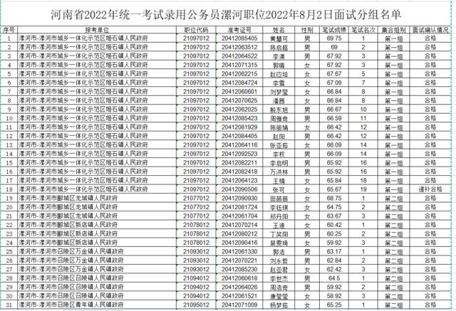 河南省2022年统一考试录用公务员漯河职位2022年8月2日面试分组名单