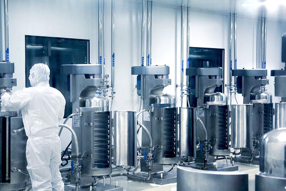 近日,记者走进位于淞江路西段的漯河微康,只见3万平方米的生产车间内,发酵车间、离心车间、乳化车间、冻干机控制室、乳酸菌调配区、杀菌区、中控室等生产区域,唱主角的都是高速运转的智能化设备,工作人员只是负责记录参数。