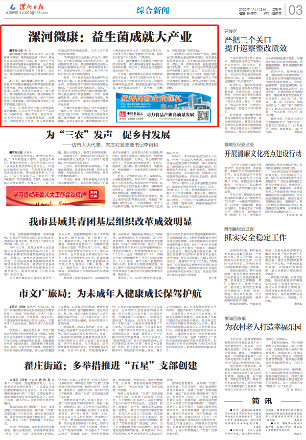 目前,漯河微康还在筹建益生菌应用技术研究院,着力解决益生菌和食品结合应用的问题,助力本土食品企业打造更有竞争力的产品。