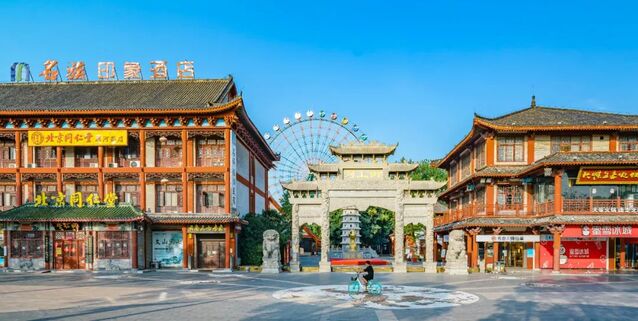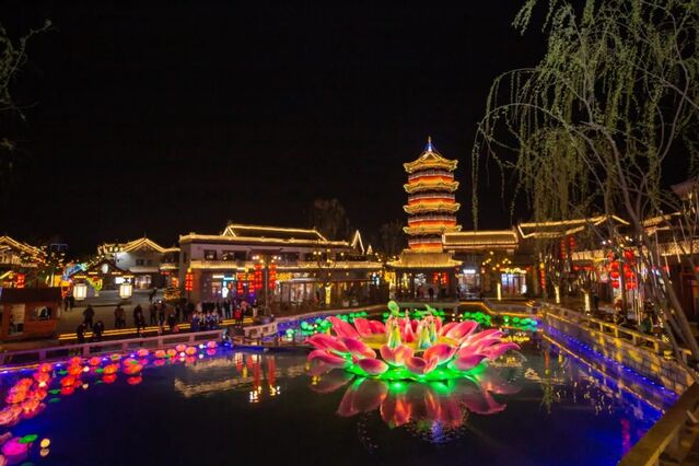 漯湾古镇位于漯河市源汇区,古镇为复原明清时期古建筑群,集美食、旅游、休闲、度假、购物为一体。黄昏过后,华灯璀璨,游人可身穿汉服漫步古镇欣赏民俗表演,品尝特色美食小吃。