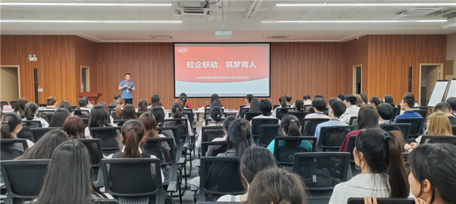 卫龙美味全球控股有限公司供应链HRBP负责人甄新丰向师生介绍卫龙企业文化和外贸形势。