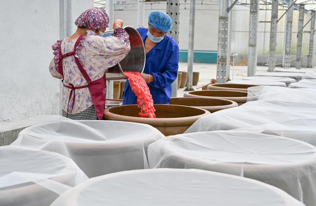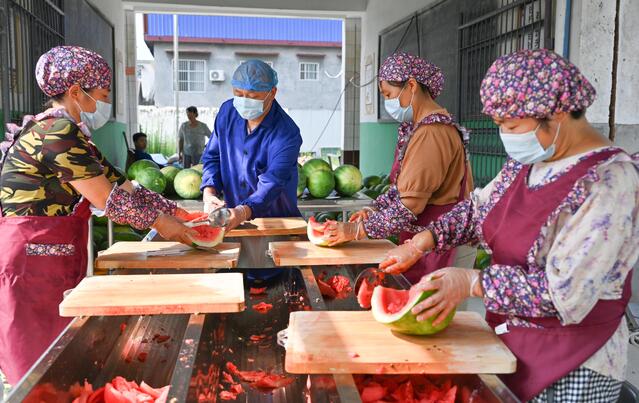 郾城区孟庙镇拦河刘村有一家做传统西瓜酱的厂家——老五美酱菜厂,产品种类有西瓜酱、黄豆酱、糖蒜等,远销全国各地。2022年,老五美酱菜被列入郾城区非物质文化遗产代表性项目名录。盛夏是制酱的最佳时节。7月18日,记者一大早便驱车前往采访。