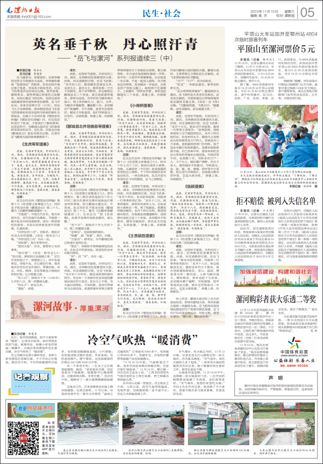 岳飞遇害后,家被查抄,岳家珍藏的诏诰文书等被官方没收。宰相秦桧兼领“监修国史”的职务,所有史馆中秉记事之笔者,非其弟子即其党羽,对岳飞的事迹并没有如实记载,故作曲笔、颠倒事实、虚构事端以相诬枉之处颇多。民间记载岳飞的史料,也因记录者或收藏者害怕受到牵连而被毁。岳飞平反后,宋孝宗淳熙五年(1178),经岳飞儿子岳霖奏陈,南宋朝廷把岳飞生前写的奏章和宋高宗赵构写给他的御札全部发还。岳霖之子岳珂在著《鄂国金佗稡编》《鄂国金佗续编》时,对这些史料进行了收录,才使我们了解到真相。这些史料中,有郾城大战时岳飞的奏章和宋高宗的诏书、信札等,在陈金台版《郾城县记》里也有相关记载。记者对岳飞郾城大战的奏章整理如下:
