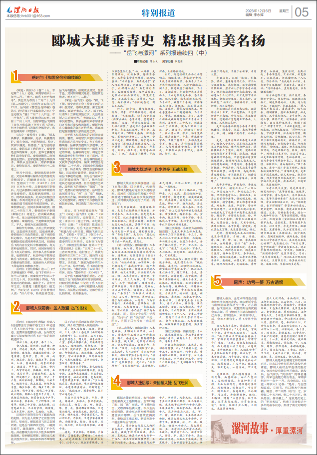 郾城大战由五次战役组成,岳飞五战五捷,以少胜多,名垂青史。郾城大捷是对这五次大捷的总称。岳珂在《鄂国金佗稡编》中详细描述了郾城大战五次战役的经过,并对相关战役进行了介绍。内容如下:
