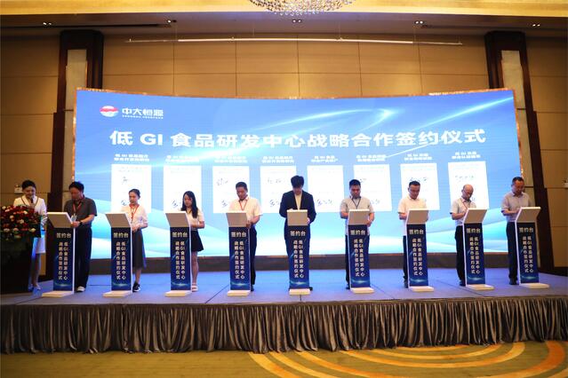 会上,由中大恒源发起倡议,中原食品实验室江正强教授科研团队、江南大学赵伟教授科研团队、郑州大学余增丽教授科研团队、河南大学康文艺教授科研团队、河南省豫药循环利用工程研究中心、漯河医学高等专科学校金少举教授科研团队等诸多科研单位共同参与,筹建成立的“低GI食品研发中心”正式揭牌。这表明食品营养与健康将成为中大恒源乃至我市食品产业高质量发展的鲜明标识,开创我市现代化食品名城创新发展新局面。