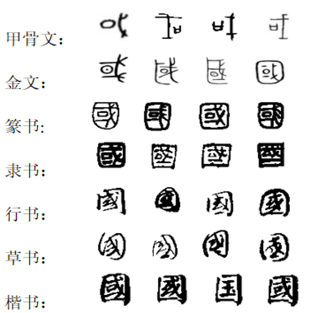 “國”字初文为“或”,从口,从戈。甲骨文的“或”字,没有下边一横。从口,这个“口”读wéi ,就是“围”的本字。这个字很形象,就像一圈围墙。所以,在古代凡是表示周围有界限或捆缚之意的字大都从“口”,如“囚犯”的“囚”字,“花园”的“园”字,“困难”的“困”字,“苗圃”的“圃”字,“包围”的“围”字,“羊圈”的“圈”字等。作为“國家”的“國”字,“口”象征古代“國”之外垣,从“戈”意为用武器保卫,以城垣护卫城邦。在古代,“国”没有固定的边界,故“国”“邦”“或”“域”本为一义,常混用,且多以“或”字代之。《说文解字》:“国,邦也。”