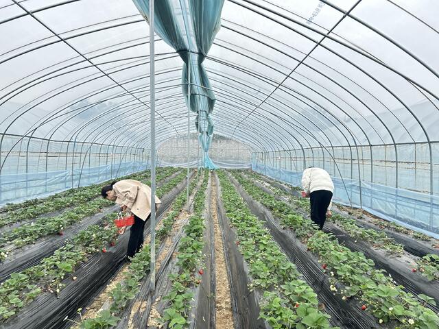 这是王店村第一次尝试种植草莓。“以前我们大棚内种的都是蔬菜,但冬天蔬菜容易冻伤,还不易保存。和草莓种植户进行合作进一步提高了土地的利用率。欢迎大家前来品尝、采摘头茬草莓。”王店村党支部书记何广伟说。