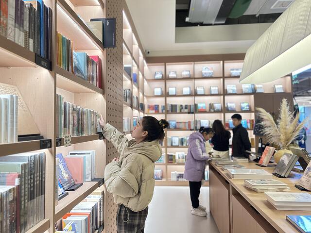 “我刚刚从广州回来,发现家乡也开了这样一家融合书店,给人一种年轻、时尚的感觉。这里的书籍很全面,豆瓣榜单里比较热门的书籍这里都能找到。这家书店给人的体验感非常不错,特别适合坐一下午静静地看书,还能满足和朋友家人能进行阅读、喝下午茶、拍拍照,特别惬意、特别放松。这是一家非常有创意的书店。”市民刘女士告诉记者。