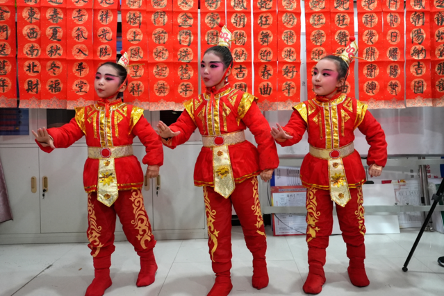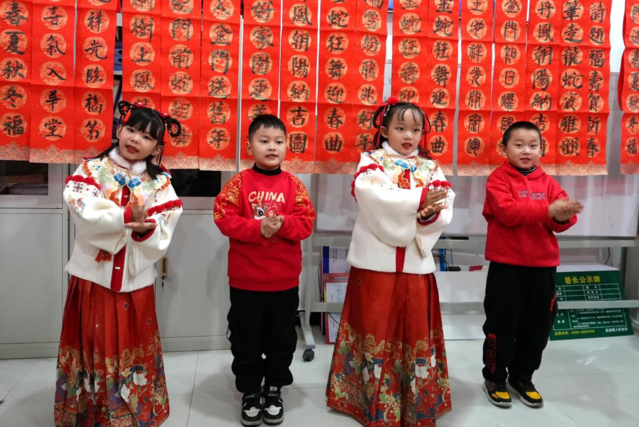 活动现场,漯河小学师生带来了精彩的文艺表演。手势舞《春节童谣》以整齐划一的动作和欢快的节奏拉开序幕,营造出浓厚的节日氛围。高梦涵老师的二胡独奏悠扬动听,深深打动了在场观众。戏曲选段则展示了传统戏曲的独特魅力,让村民们深切感受到传统文化的深厚底蕴。此外,漯河小学的书法和泥塑社团学生现场挥毫泼墨书写春联,并创作泥塑作品,为村民们送上新春的美好祝福。