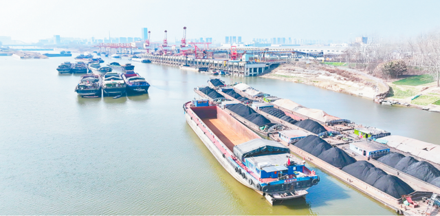 2月28日,在漯河港,满载集装箱的几十辆重型货车在作业区穿梭成流,红色大型吊装机械挥动长臂将货物精准吊装入船,几十艘货船首尾相接,将豫中地区的产品通过“黄金水道”送往长三角经济圈。