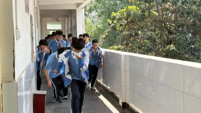 同学们弯腰低姿、捂住口鼻,沿宿舍楼道和楼梯快速向操场集结。女生疏散至操场南侧,男生到达操场北侧。到达操场后,各班班主任立即清点人数,确保无遗漏。 整个疏散过程仅用时3分钟,做到了快速、有序、安全。全程紧张而不慌乱,充分体现了日常安全教育的成效。