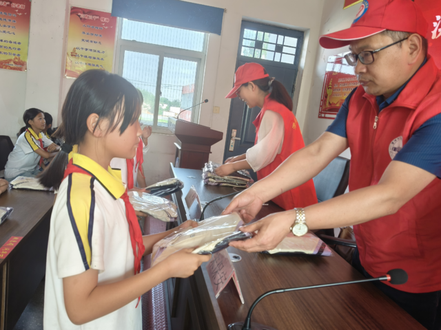 漯河二高团队为召陵镇第二中心小学合唱团学生送上精心准备的节日礼物——58套夏季合唱演出服。当孩子们手捧崭新的演出服时,纯真的笑脸如夏花绽放。