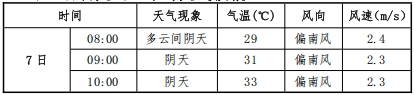 6月7日:多云到阴有分散性短时阵雨,偏南风转东北风2-3级,26/36℃;