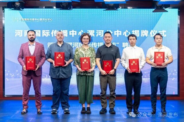 仪式上,为3名外籍友人及3名热爱国际传播事业的漯河市民颁发了“漯河国际传播大使”聘书。他们将以独特视角,通过短视频、直播、海外社交平台等渠道,向世界展现真实、立体、全面的漯河。