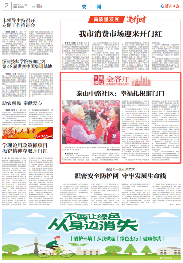 “2025年8月,沙澧苑小区电线短路,不到2小时就抢修完毕;泰山路沙河大桥封闭后,辖区不通公交车,社区工作人员迅速与相关部门协调,现在有168路公交车经过。”2026年1月6日,谈起源汇区顺河街街道泰山中路社区的变化,居民樊俊娥竖起了大拇指。这座拥有5719名居民的社区,从网格筑基、多元联动等多维度精准发力,将服务送到居民心坎上,不断增强居民幸福感。