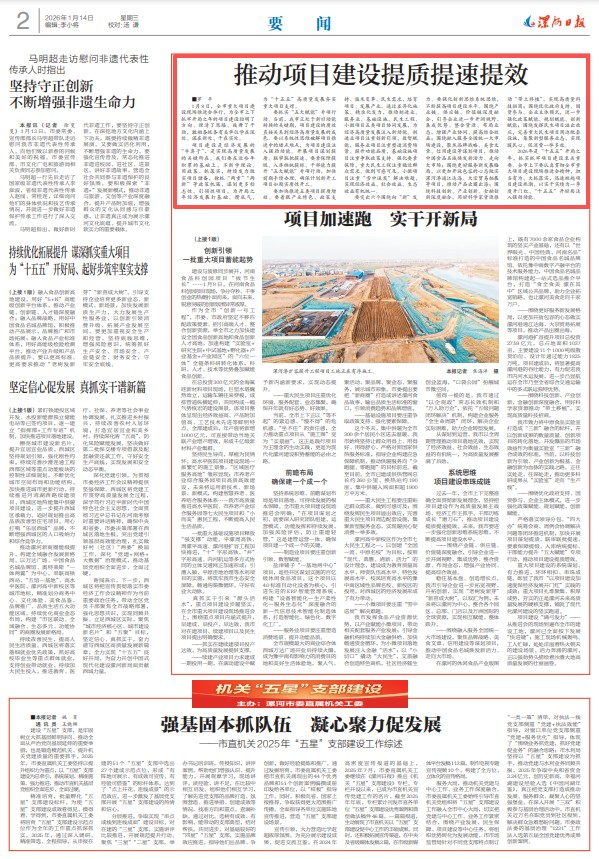 2026年是“十五五”开局之年,抓实抓牢项目建设至关重要。全市上下要认真贯彻全市重大项目建设现场推进会精神,担当有为、大抓落实,迅速掀起项目建设热潮,以实干实绩为一季度开门红、“十五五”开好局注入强劲动能。