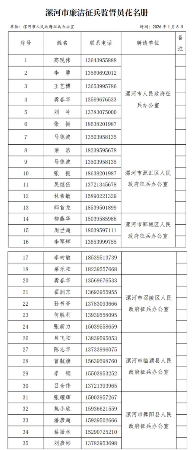 2.市级咨询电话及地址。漯河市征兵办:0395-2373013(报名流程、方式、方法、体格检查、政治考核、优待政策)。地址:漯河市嵩山路500号。