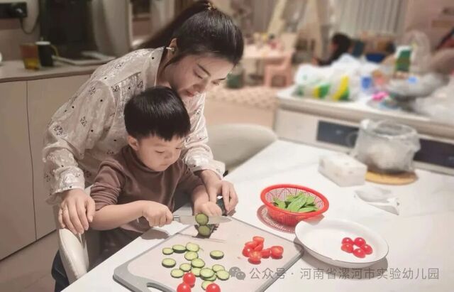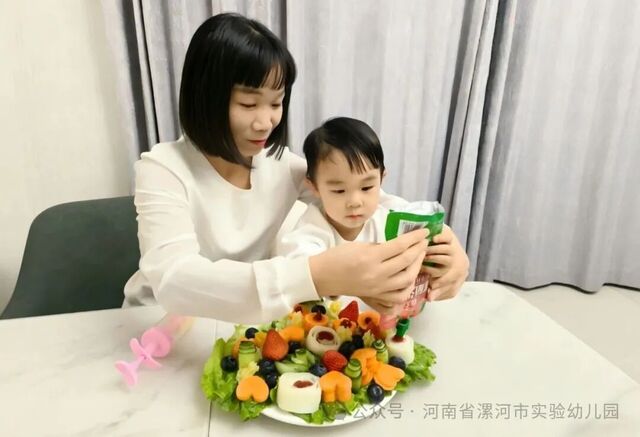 食育坊里准备的“亲子春盘”制作任务,更将节气教育延伸至家庭,孩子们与家长一同挑选、清洗、摆盘时令春蔬,在协作中品味健康,在分享中传递亲情。