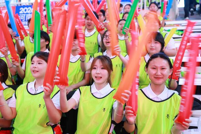 漯河市职业技术学院大学生啦啦队全程助威,用饱满热情为家乡球队加油打气,成为赛场一道暖心风景线。